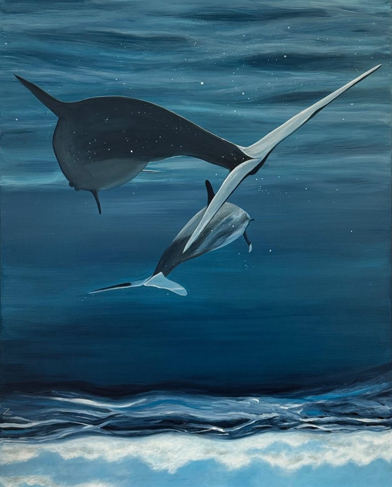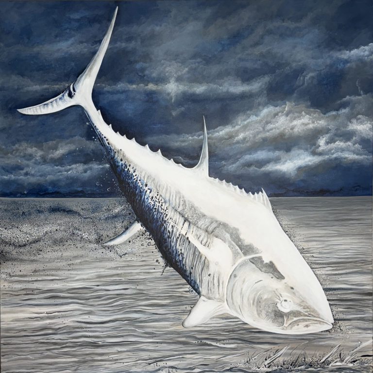 ... der Thunfisch ist wieder in die Meerenge zurückgekehrt. Prachtvoll in seiner super energetischen Jagdmethode. Meine Interpretation im Negativ gemalt ist es nicht nur ein Nahrungsmittel sondern der Beweis, das wir durch Schutz, die Möglichkeit erreichen können das Wildnis zurückkehren kann.